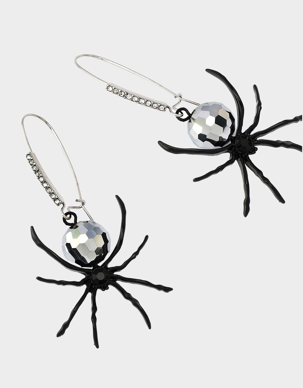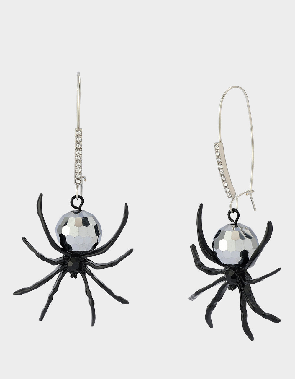 Add a touch of spooky fun to your look with these DISCO SPIDER DROP EARRINGS BLACK. Featuring a playful disco ball spider dangling from elegant long ear wires with subtle sparkle, they’re perfect for making a unique statement. These earrings secure comfortably with shepherd’s hook closures.