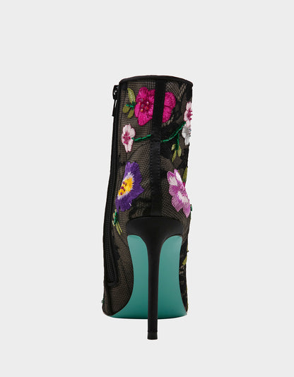 Add a touch of whimsy to your shoe collection with the ANITA pointed-toe stiletto heel ankle boot. This bootie not only adds height and sleekness to your look, but its unique multi-floral design will also add a playful twist to any outfit.
