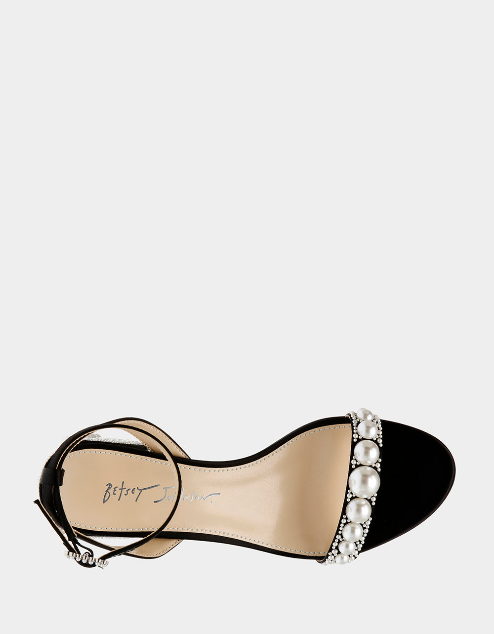 - Satin textile upper material with pearl stone embellishments